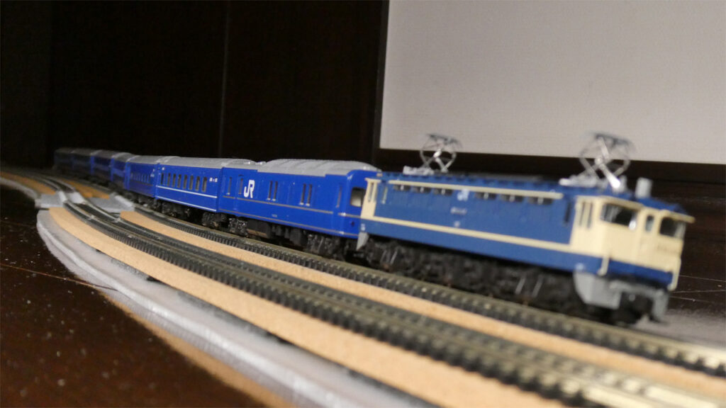 何もしていないからこそ、なんですが、前回は牽引機関車EF65-1000に、クーラーを搭載した状態でしたが、今回はクーラーなしの2006年以前の状態で走らせてみます。