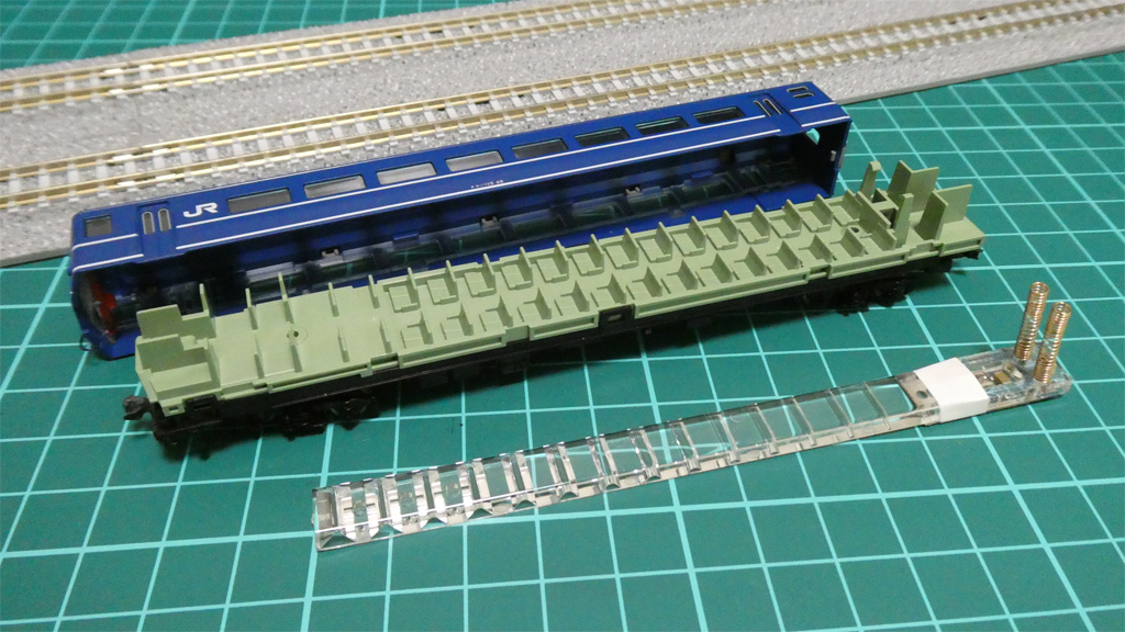 TOMIXの室内灯取り付けは、こちらにも書いてますが、特に難しい点も悩む点も無いかと思います。
