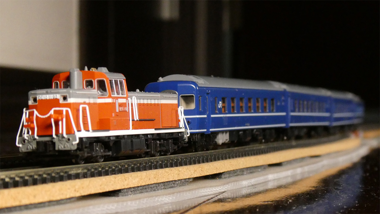 DE10の先頭のナックルカプラーを見せないよう、意図してぼかしたわけではないですが、はっきりと粗が目立つところは無かったように思います。