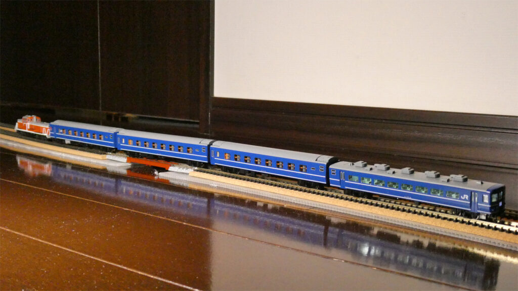 ユーズドで購入した14系座席車を使用して、関西と九州を結んでいた夜行急行「阿蘇」「くにさき」「雲仙」「西海」を走らせた話ですが、なぜ急に?と思ったら、ちょうどその頃、KATOから「14系座席車 国鉄仕様」発売の発表があったんですね。