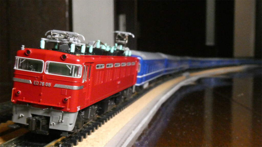 その半年後の2025年5月には寝台特急「なは」用にとTOMIXのED76-0(後期型)を購入しているので、TNカプラーどうしの相性としてはベストなんですが、こちらは側面にJR九州のロゴ入りなので、今回の国鉄時代の「さくら」とはちょっと相容れないんですね。
