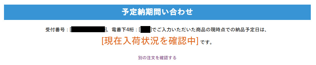 当初の最短納期日も過ぎた、注文から9日目。念のために、と、HPのサイトから確認すると、