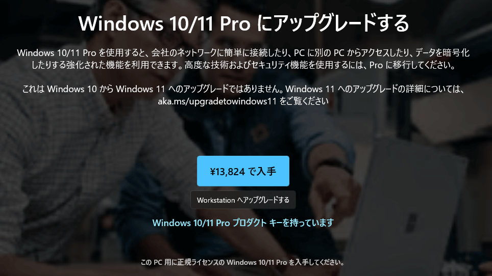 HomeからProへアップグレードするための価格は13,824円(税込み)です。ところでこの半端な価格、税別価格も1円単位の端数が出るので、為替の影響?なんて考えたんですが、13,824円を8%で計算すると本体価格が12,800円と日本人好みのすっきりした値になるんですよね。偶然なんでしょうかね。