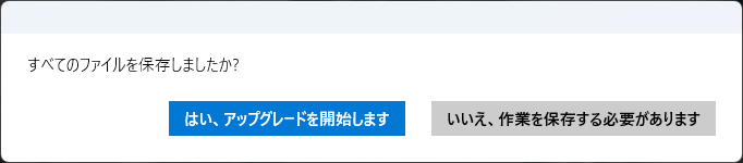 他にはウインドウを開いていないので、「はい、アップグレードを開始します」をクリック。