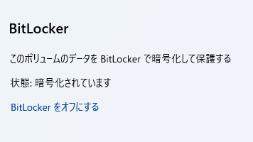 BitLockerの欄にある「BitLockerをオフにする」をクリックします。