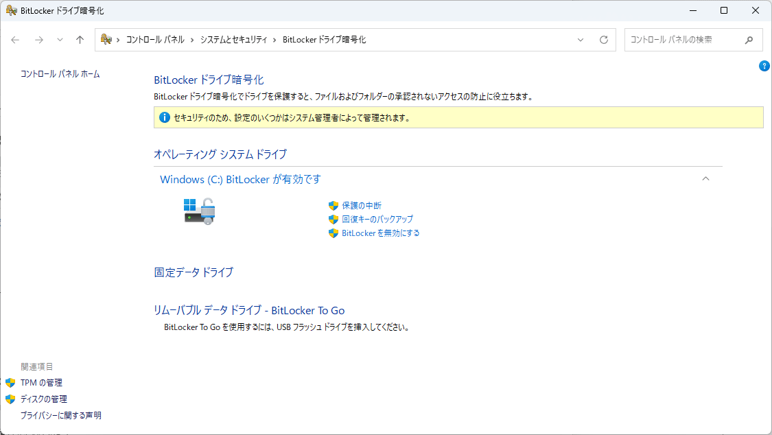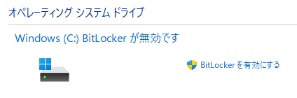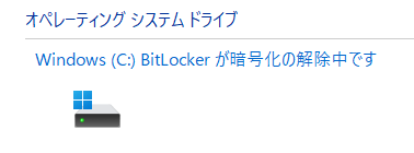 2TBのSSDが搭載されていますが、特に差し替えの予定はないものの、会社のPCで、BitLockerが有効になっていたことで面倒な経験をしたことがありますので、解除しておきます。