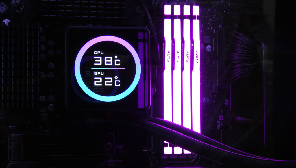 見ての通り、正面から向かって左側のパネルはシースルーです。反射が強くて撮影が難しいんですが、シースルー前提でなければ水冷クーラーに液晶ディスプレイが付くことなどあり得ないでしょうし、ゲーミングマシンは見えるのが主流なんですよね。