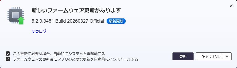 これは個人的に影響があるのか無いのか判断が難しいですが、特定の条件下でNASが突然再起動することがあったそうです。特にその経験があったわけではないので、条件に当てはまっていたかどうかは判らないですが、アップデートしておきたい内容ではあります。