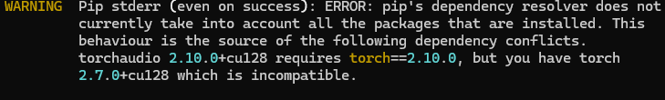 xformers 0.0.30 requires torch==2.7.0, but you have torch 2.10.0+cu128 which is incompatible.