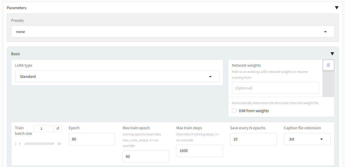 Train batch sizeは、VRAM16GBの5070Tiなら、2で大丈夫かと思います。実はもうちょっと高い値でも学習可能なんですが、一説には並行して学習を行うよりもbatchが低めの方が安定する(画像差分を認識しやすい)、という話もあるようで、2としています。